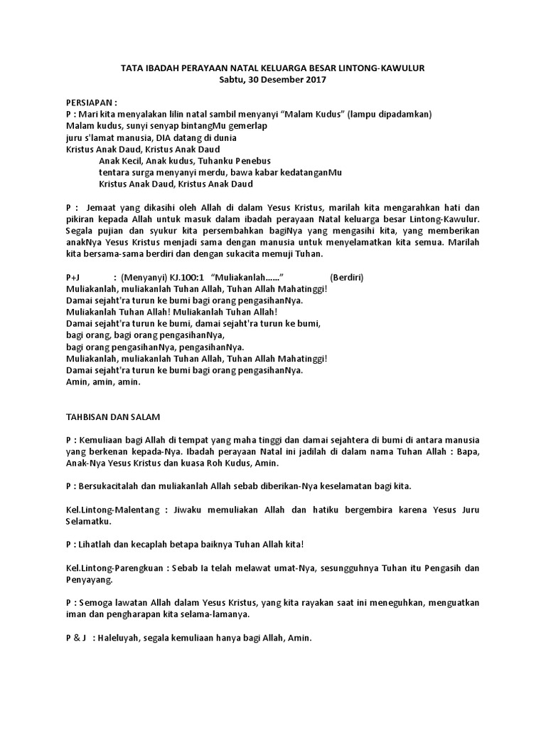 Misa malam natal kamis 24 desember 2020 pk 18 00 wib. Allah menciptakanku pada hari pertama dunia dijadikan. Liturgi ragam bahasa prolog : .liturgi malam natal 24 des 2018 gbkp indrakasih, latihan liturgi natal 2018, божественная литургия в успенском соборе в праздник входа господня в иерусалим 1 04 2018. Perayaan natal yang sukses tentu akan terjadi apabila adanya kerjasama antara gembala dan seluruh jemaat serta.